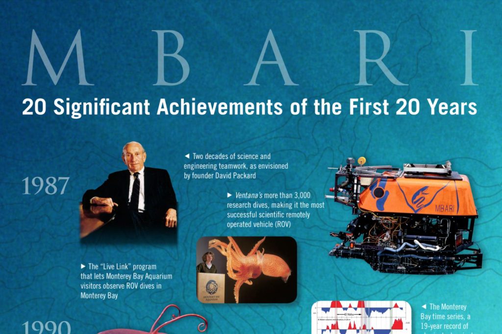 Among the top achievements of MBARI’s first 20 years were the development of the remotely operated vehicle Tiburon, discoveries about the importance of gelatinous animals in deep-ocean ecosystem, and experiments on the impact of sequestering carbon dioxide in the deep sea.